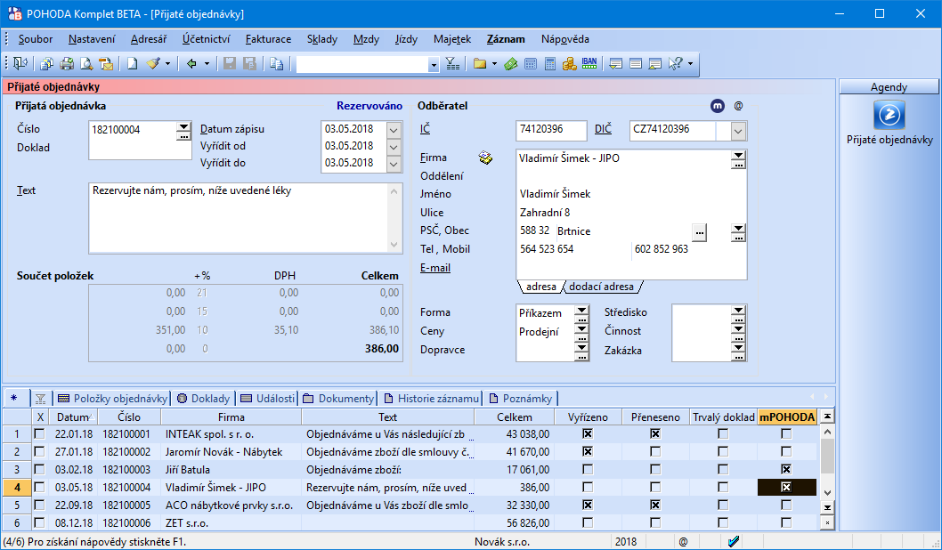Rychlé vyřízení objednávek vystavených v programu POHODA