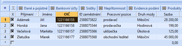 Pro případ, že existuje více zaměstnanců se stejným jménem, nebo více zaměstnanců nemá přiřazeno rodné číslo, je vhodné označit křížkem více odpovídajících sloupců, typicky Jméno, Příjmení a Rodné číslo.