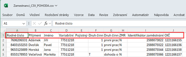 Jak provést import OIČ a ID zaměstnání z *.csv souboru od ČSSZ?