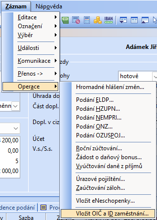 Otevřete agendu Mzdy/Personalistika a použijte povel Záznam/Operace/Vložit OIČ a ID zaměstnání.