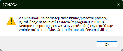 Importy OIČ a ID zaměstnání z formátu CSV provedete pomocí funkce Vložit OIČ a ID zaměstnání v agendě Personalistika.