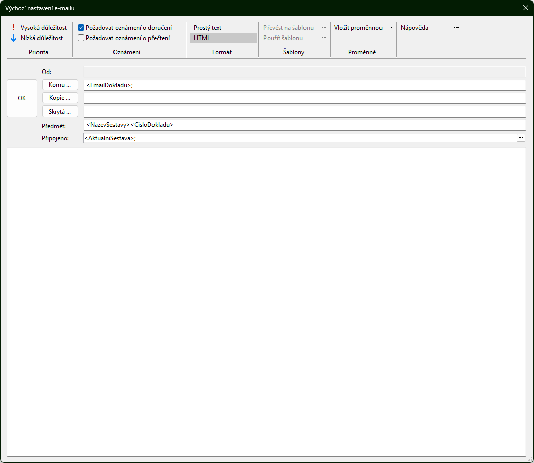 POHODA používá pro úpravu textů externí WYSIWYG editor.