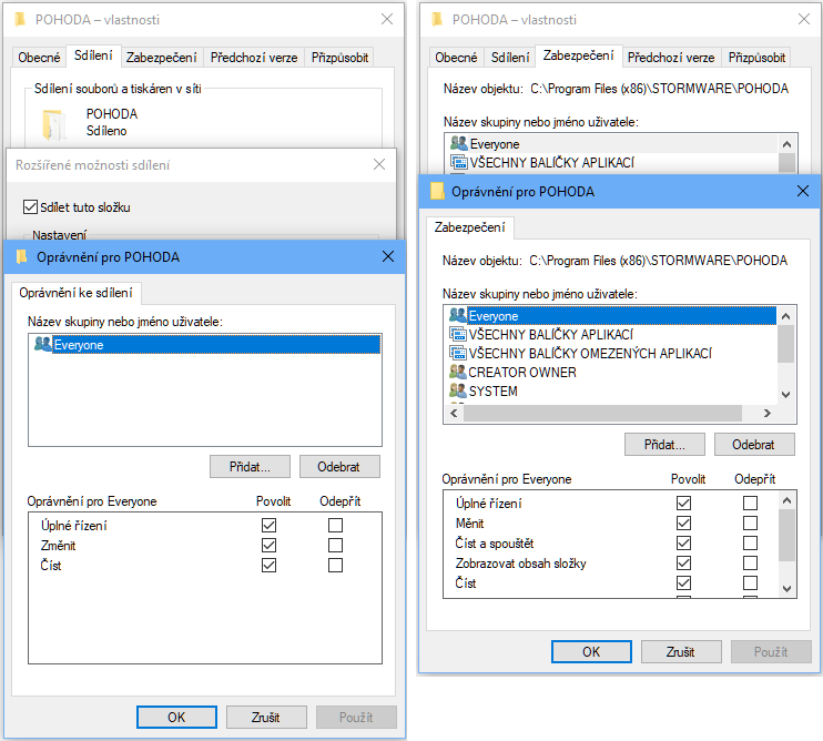 Práva pro program POHODA je nutné nastavit na aplikační adresář programu (např. C:\Program Files (x86)\Stormware\Pohoda).