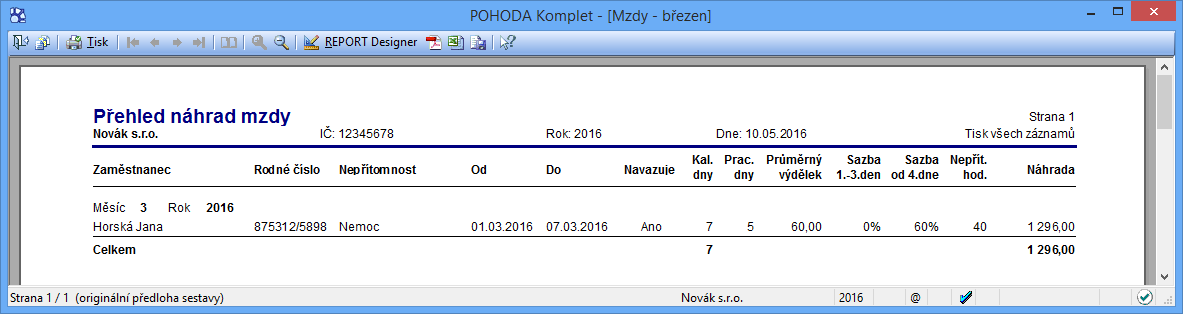 Na tiskové sestavě Přehled náhrad mzdy v agendě Mzdy si nyní můžete zkontrolovat, jestli nepřítomnost zaměstnance pokračuje z minulého měsíce.