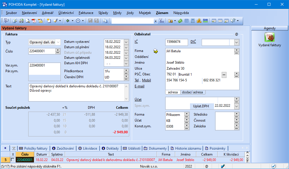 Při vystavení opravného daňového dokladu musíte rozlišovat, zda se jedná o kladný (dříve vrubopis), nebo záporný ODD (dříve dobropis).