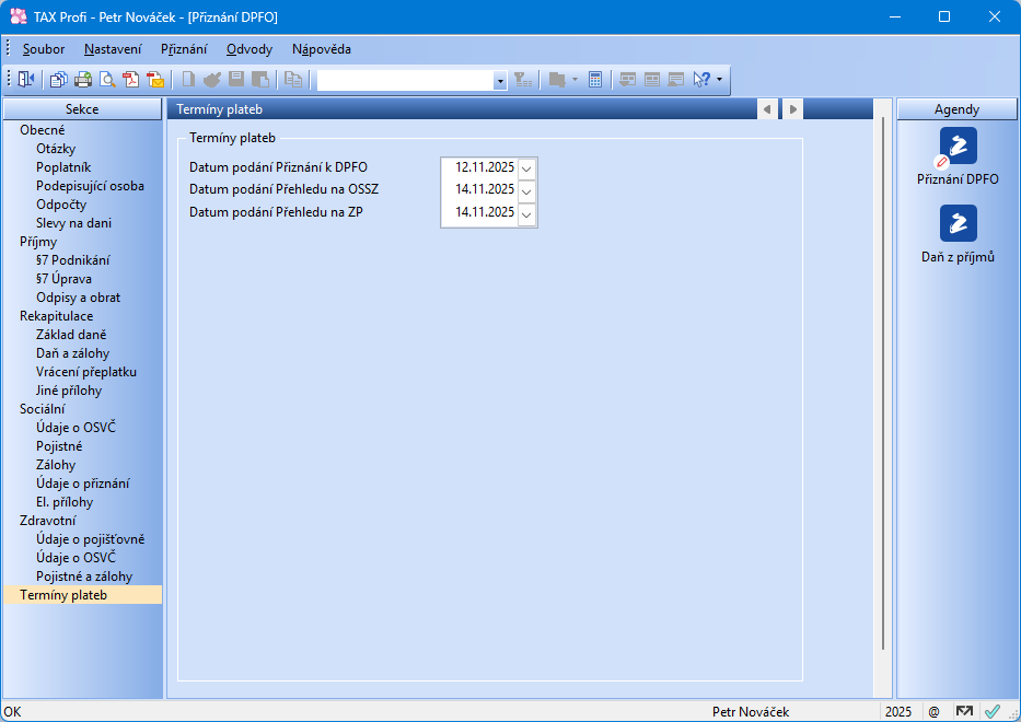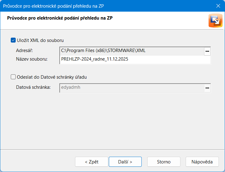 Tyto tiskopisy můžete na příslušnou správu sociálního zabezpečení podat prostřednictvím povelu Záznam/Podat elektronicky… Na druhé straně Průvodce pro elektronické podání zvolte způsob odeslání, a to datovou schránkou nebo e-mailem.